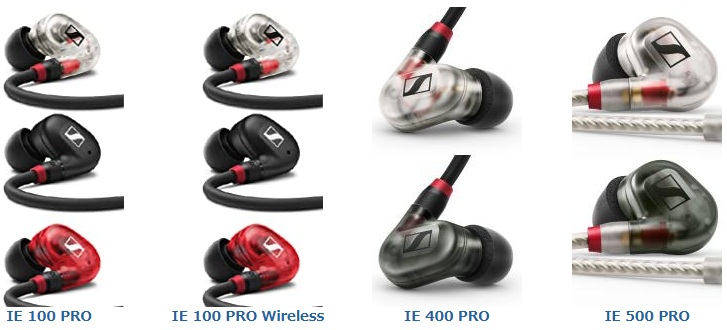 【ゼンハイザー IE 100 PRO】は「IE ○○ PRO」シリーズのエントリーモデルの位置づけになっており、上位機種には【ゼンハイザー IE 400 PRO】、【ゼンハイザー IE 500 PRO】があるとのこと。