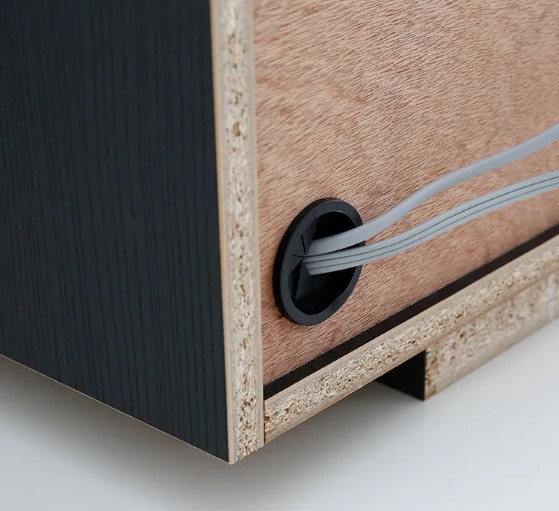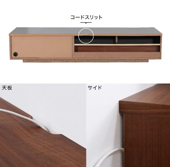 テレビ台の天板の後ろに小さめの穴が開いており、ここにテレビの電源ケーブルなどを通して配線をなるべく見せないような仕様になっています。